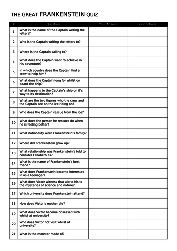 Frankenstein depart the train station and walk to the wagon, igor instructs the doctor to walk this way, using igor's short cane. He gave him a letter from elisabeth. Frankenstein introduced clerval to the professors. He was crossing this ocean to escape a monster. Perfect prep for frankenstein quizzes and tests you might have in school. There have been many movies, books, etc. Frankenstein questions and answers (to cut and paste) the first two headings include the frankenstein multiple choice questions, and the final two headings list the writing prompts (short and extended). What did clerval give frankenstein when he was better? Victor frankenstein contracts this infection when he travels across the cold, icy arctic ocean. On frankenstein since way before we even learned to walk. Test your knowledge on all of frankenstein. Sign up for our latest news and updates! May 13, 2021 · ready for a trivia challenge on mary shelley's frankenstein?